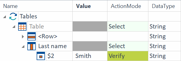 Die Engine überprüft, ob in der Spalte Last name in Zelle 2 der Wert Smith steht.