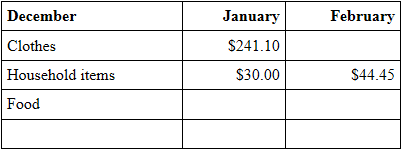 Beispieltabelle FirstEmptyRow Die Spalte February ist als entscheidend für die Steuerung definiert (decisive column). Dadurch wird in der Spalte February nach der ersten unbefüllten Zelle gesucht und in derselben Zeile in der Spalte January in die Zelle mit dem Wert $241.10 geklickt.