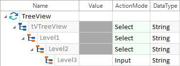 Bei der Steuerung der TreeView mit der mehrzeiligen Darstellung muss für die TreeView die Aktion Select ausgewählt werden. Für alle übergeordneten Einträge des Eintrags, den Sie steuern möchten, muss ebenso die Aktion Select ausgewählt sein.