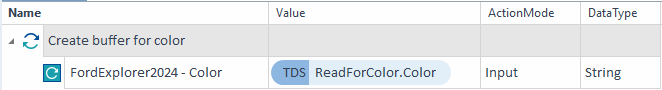 Geben Sie den TDS-Ausdruck {TDS[ReadForColor.Color]} als Wert ein. Dadurch wird Tosca angewiesen, den Wert des Attributs Color der Ressource ReadForColor in den Buffer zu schreiben.