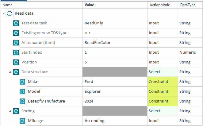 Testschritt Read data: Definieren Sie das gesuchte Testdatenelement
