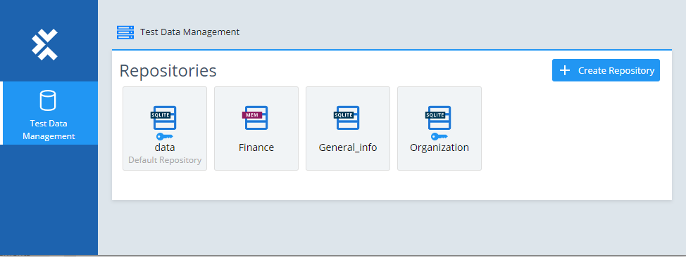 Die Startseite des Test Data Management zeigt alle konfigurierten Repositorys als Kacheln. Bei der Installation des Test Data Service wird ein Standard-Repository erstellt.