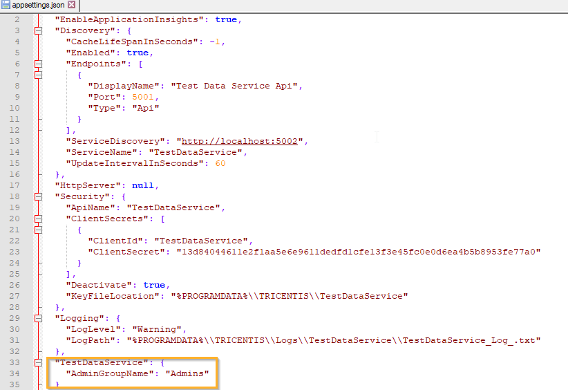 Sie können die TDS-Administratorrechte manuell über die Datei Appsettings.json einstellen. Führen Sie hierzu die folgenden Schritte aus: