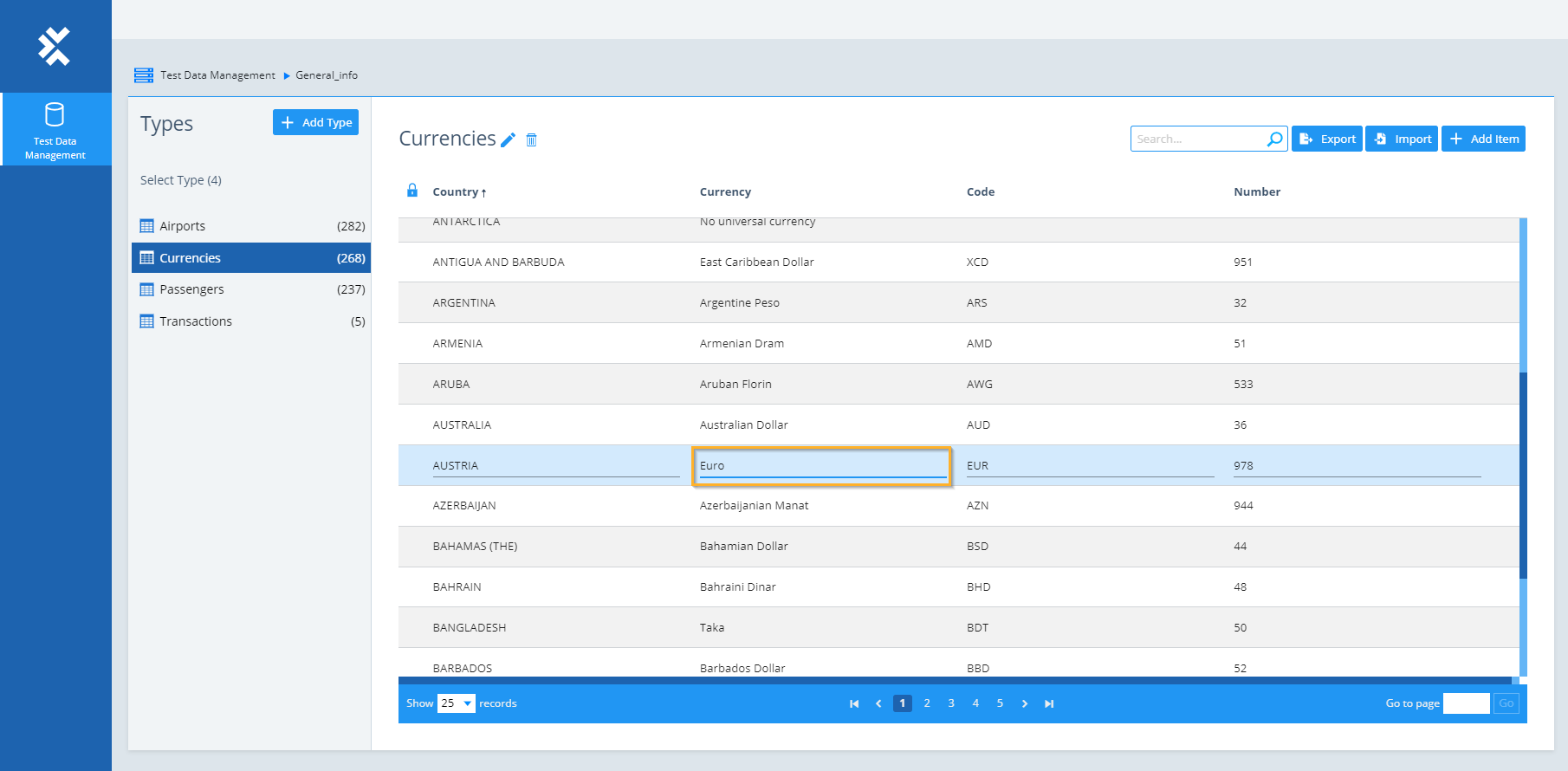 Mit dem Test Data Management können Sie entsperrte Elemente bearbeiten, d. h. Elemente, die noch nicht verwendet wurden, und entsperrte Elemente Ihrer Testdaten-Repositorys.