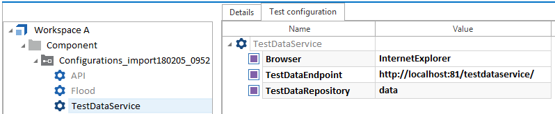 TestDataService aus, und definieren Sie die folgenden Testkonfigurationsparameter:-
