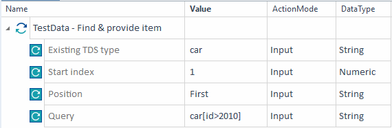 Das Modul dient dazu, ein bestimmtes Element im TDS-Repository zu finden. Sobald Sie das Element abgerufen haben, wird das Element gesperrt. Kein anderer Testschritt kann dasselbe Element abrufen. Für nähere Informationen siehe Kapitel "TestData - Find & provide item".