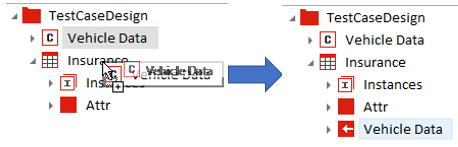 Klasse Vehicle Data per Drag & Drop auf das TestSheet Insurance gezogen