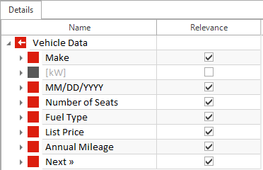 Aktivieren oder deaktivieren Sie in der Zeile der jeweiligen Attribute das Kontrollkästchen Relevance.