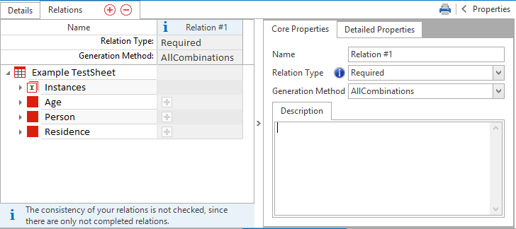 Wenn Sie Relationen ändern oder hinzufügen, müssen Sie auf das TestSheet klicken, um eine weitere Konsistenzprüfung auszulösen.