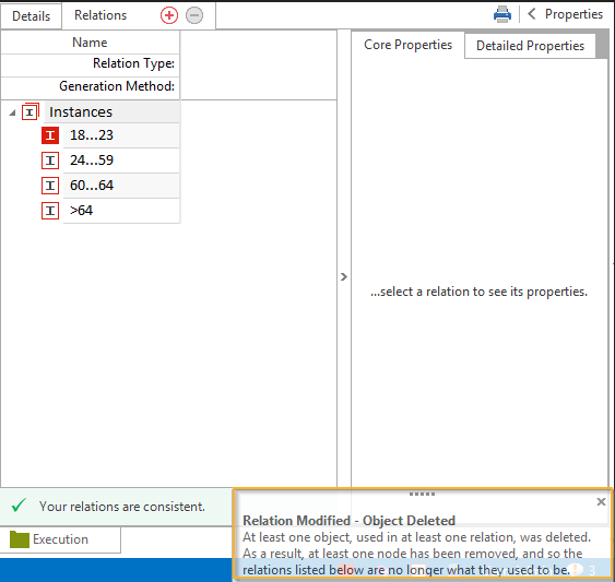 Wenn Sie ein Attribut oder eine Instanz löschen, die in einer Relation verwendet wird, modifiziert Tricentis Tosca automatisch die Relation.