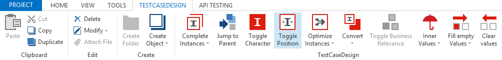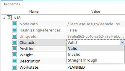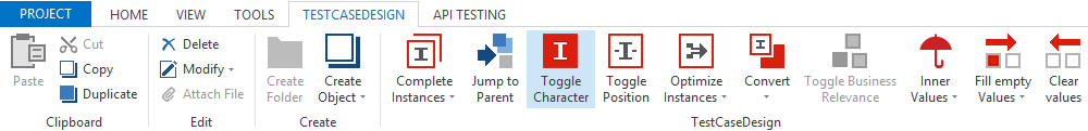 Sie können einen Instanzcharakter ändern, indem Sie die Schaltfläche Toggle Character im dynamischen Menü TestCase Design verwenden.