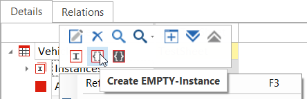 Um eine EMPTY-Instance zu erstellen, klicken Sie mit der rechten Maustaste auf ein TestSheet, eine Instanzen-Sammlung oder ein Attribut und wählen Sie Create EMPTY-Instance aus der Minisymbolleiste.
