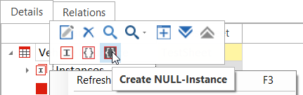 Um eine NULL-Instanz zu erstellen, klicken Sie mit der rechten Maustaste auf ein TestSheet, eine Instanzen-Sammlung oder ein Attribut und wählen Sie Create NULL-Instance aus der Minisymbolleiste.