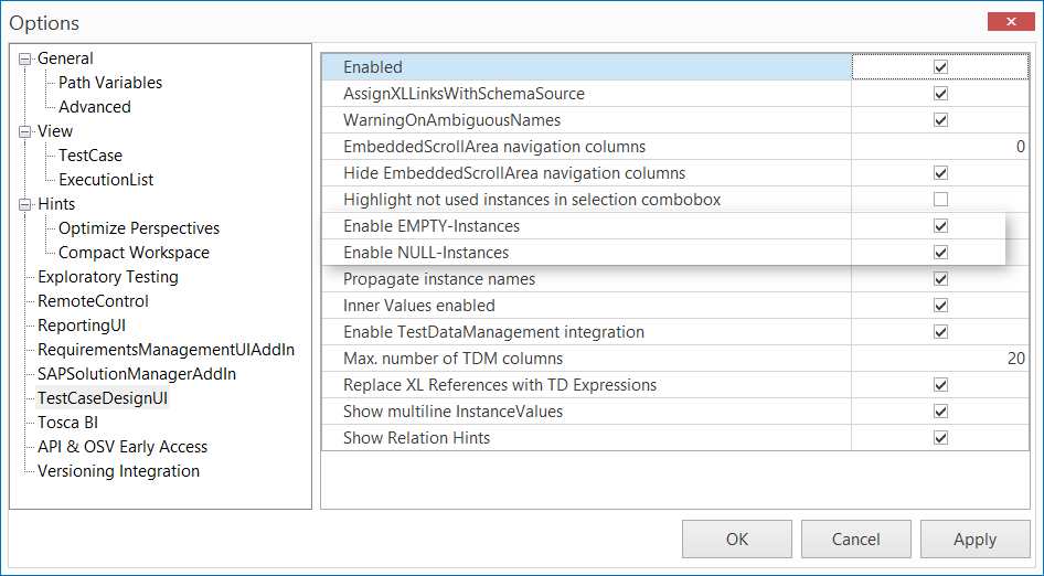 Enable EMPTY-Instances und NULL-Instances im Options-Dialog