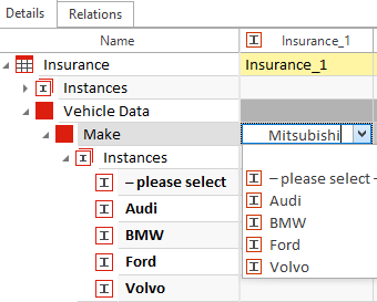 Instanzen sind in Instanzen-Sammlungen enthalten. Wenn also eine neu erstellte Instanz die erste Instanz innerhalb eines Attributs ist, erstellt Tricentis Tosca automatisch eine Instanzen-Sammlung.