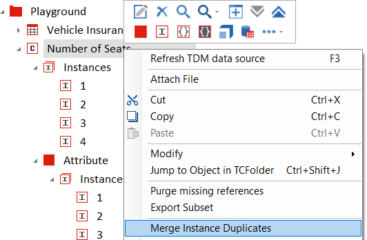 Wählen Sie die Option Merge Instance Duplicates aus dem Kontextmenü.