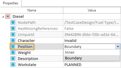 Um anzuzeigen, dass ein bestimmter Wert ein Grenzwert ist, verwenden Sie die Schaltfläche Toggle Position im dynamischen Menü TestCase Design, um die Eigenschaft Position von Inner auf Boundary zu ändern.