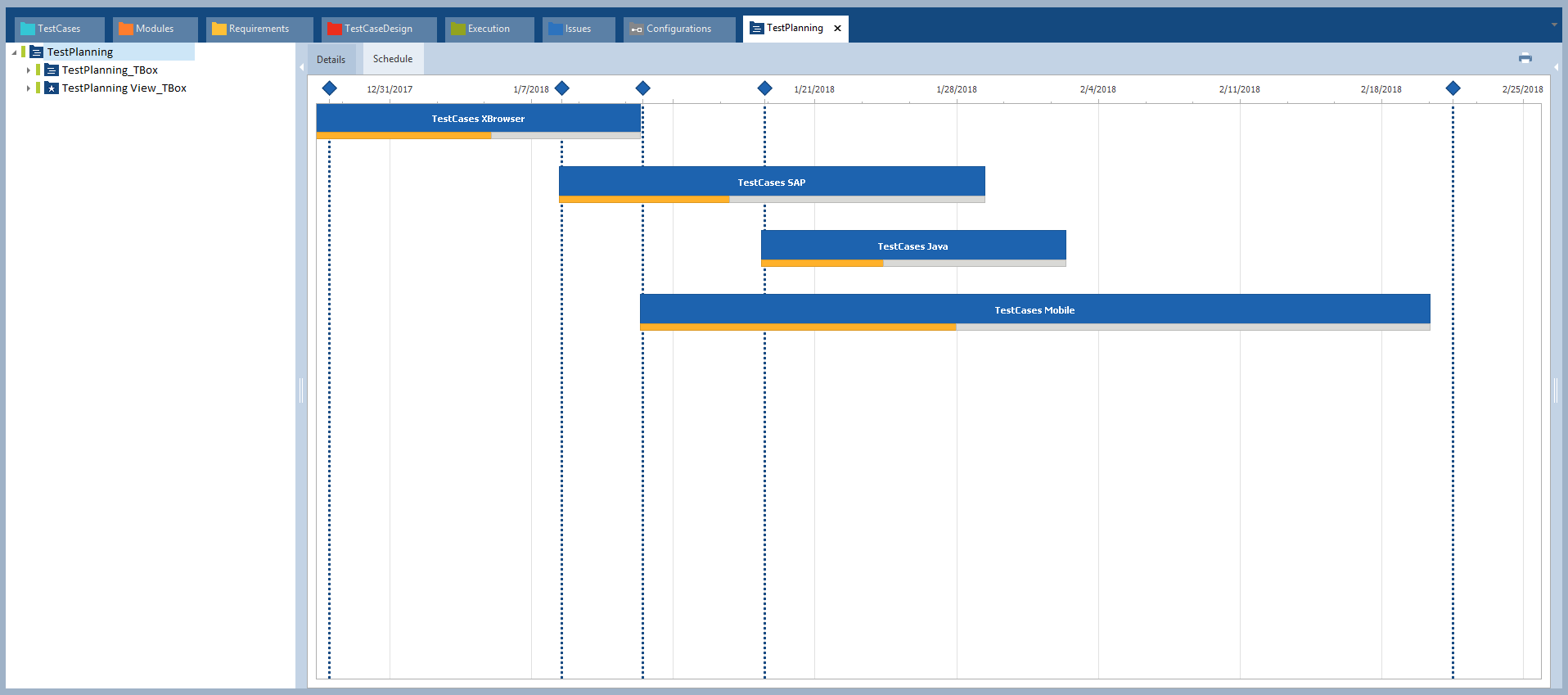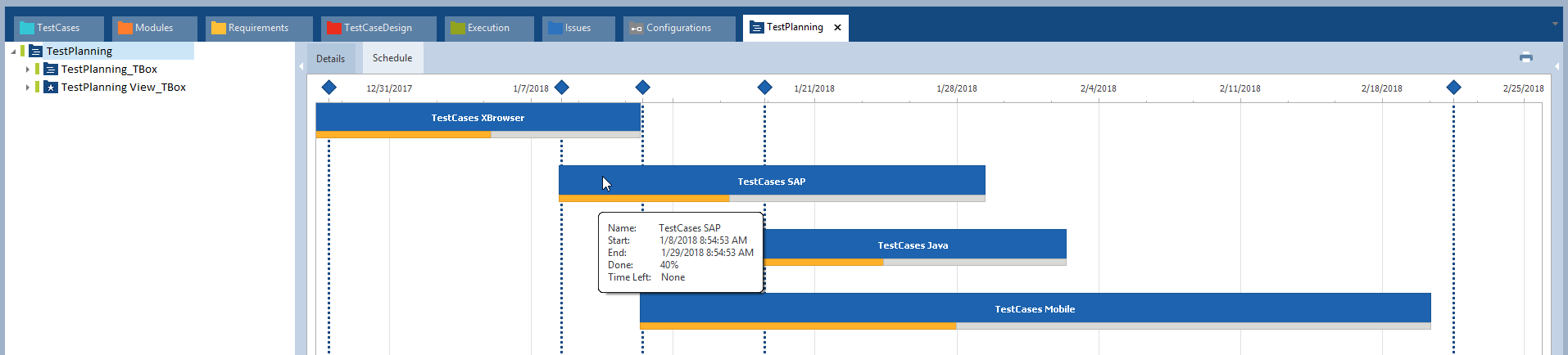 Zeitplanansicht Tricentis Tosca TestPlanning.