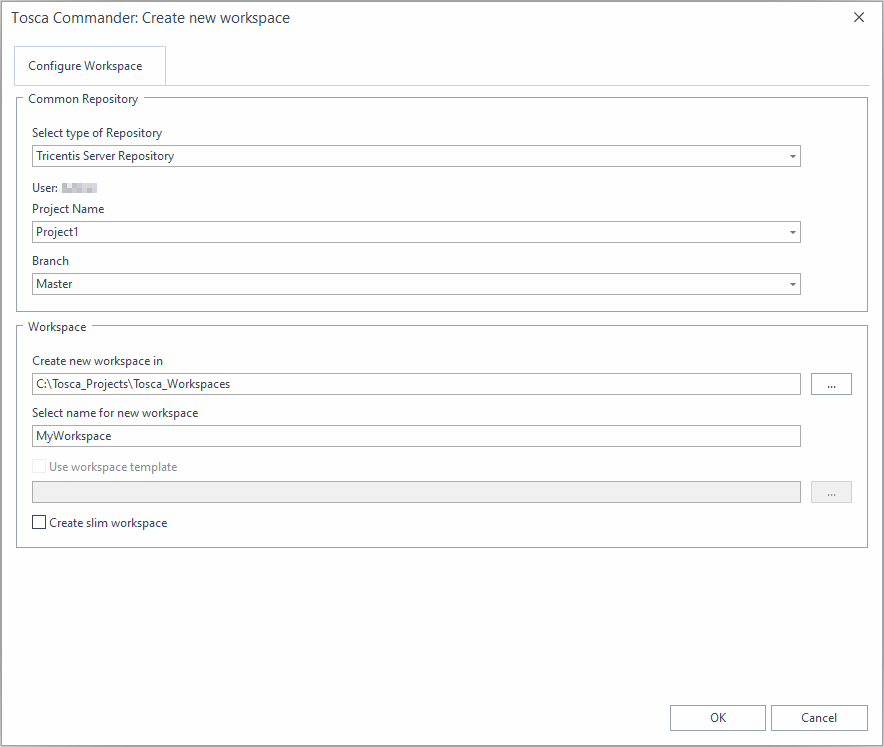 Um einen neuen Tricentis Server Repository-Arbeitsbereich zu erstellen, führen Sie diese Schritte aus: