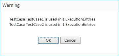 Wird der Testfall oder die Testfälle in einem oder mehreren Ausführungslisten verwendet, erscheint ein diesbezüglicher Warnhinweis.