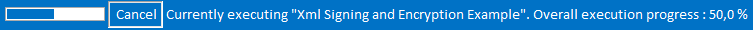 Sie können den Fortschrittsbalken in der Einstellung Show Progress Visualization deaktivieren. Brechen Sie in diesem Fall die Ausführung über die Tosca Commander-Statusleiste ab: