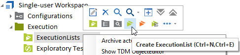 Klicken Sie dazu mit der rechten Maustaste auf einen Ausführungslisten-Ordner und wählen Sie in der Minisymbolleiste die Option Create ExecutionList.