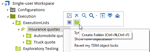 Sie können alternativ eine Ordnerstruktur einrichten, um Ihren Bereich Execution anzuordnen, bevor Sie mit der Erstellung von Ausführungslisten beginnen. Dadurch können Sie Ihre Tests organisieren, was insbesondere dann nützlich ist, wenn Sie Ausführungslisten aus Testfällen von verschiedenen Ordnern erstellen müssen.