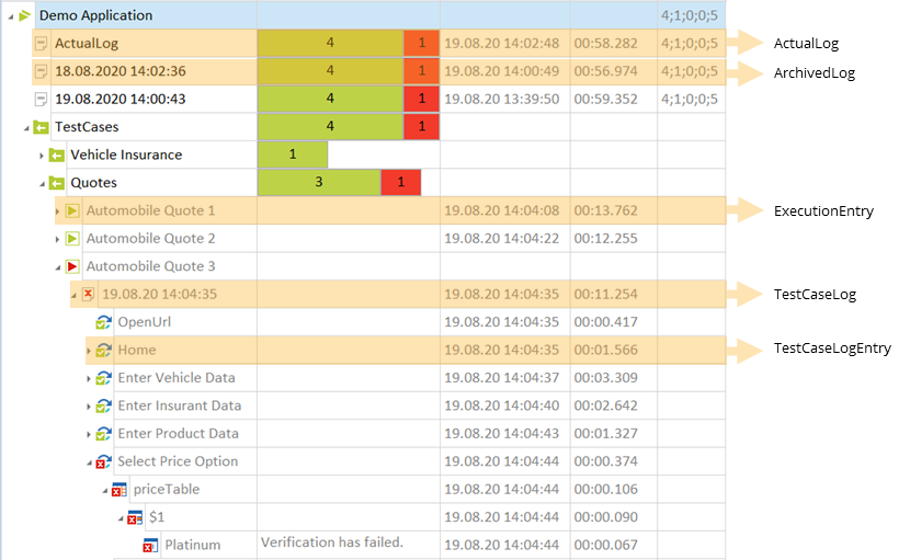 Jedes Testfall-Log gehört zu einem bestimmten Testdurchlauf. Jeder Testdurchlauf hat seine eigene ExecutionSessionID, die Sie in den Eigenschaften eines Testfall-Logs finden. Alle Testfall-Logs, die zu einem Testdurchlauf gehören, haben die gleiche ExecutionSessionID. |