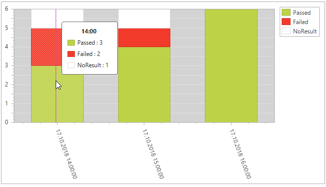 Beispiel für ein StackedBar-Diagramm: Anzeige der Ausführungsergebnisse in Stundenintervallen