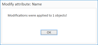 Nachdem die Änderungen durchgeführt wurden öffnet sich eine Bestätigungsmeldung, die zeigt wie viele Objekte von den Modifikationen betroffen sind.