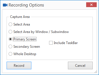 Wählen Sie den Aufnahmebereich, und klicken Sie auf Aufnehmen.