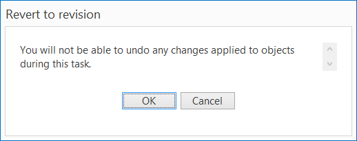 Der Folgedialog zeigt an wie viele Objekte vom Revisionswechsel betroffen sind. Über die Schaltfläche OK wird der Vorgang gestartet.