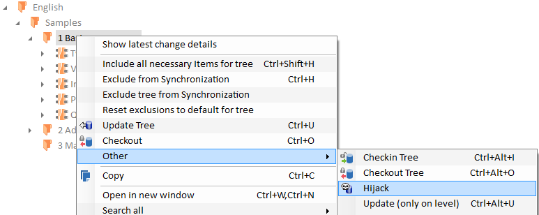 Hijacking erwirkt temporäre Schreibrechte für ein Objekt, ohne dieses auszuchecken. Hijacking berücksichtigt das Berechtigungsmodell. Ein Benutzer muss Schreibrechte für jene Elemente haben, auf die er ein Hijack ausführen will.