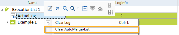 Um die Verknüpfung zwischen Testauftrag und Testobjekt zu löschen, klicken Sie mit der rechten Maustaste auf das ActualLog des Testobjekts und wählen Sie im Kontextmenü die Option Clear AutoMerge-List.