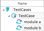 Zuerst werden alle Module gesucht, die den Namen Fahrzeugdaten haben. Der zweite ArrowOperator verweist auf alle referenzierten Objekte (Testschritte, Modulattribute, die ObjectMap, Ordner und Benutzer). Für die Aufgabenstellung relevant sind nur die Testschritte, da diese eindeutig mit den gesuchten Testfällen verknüpft sind. Der Zugriff auf diese übergeordneten Elemente erfolgt über "=>SUPERPART:TestCase".