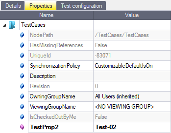 Eine benutzerdefinierte Eigenschaft eines Testfall-Ordners hat den Namen TestProp2. Gesucht werden alle Testfall-Ordner, bei denen diese Eigenschaft den Wert Test-02 hat. Die Groß-/Kleinschreibung soll dabei ignoriert werden.