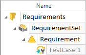 ->PROJECT->COMPLEMENT(=>SUBPARTS:RequirementSet[NodePath==“/Anforderungen/RS"]=>SUBPARTS:RequirementTestCaseLink->TestedBy,