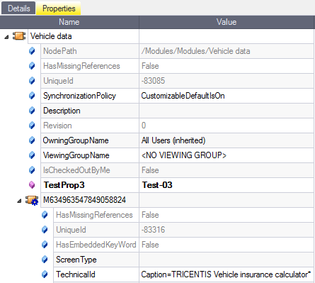 Suche nach TechnicalIDs von Modulattributen. Diese TechnicalID liegt unter dem ObjectControl.