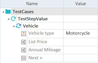 Suchen Sie nach allen Testfällen, die einen Testschrittwert mit dem Wert Krafträder beinhalten.
