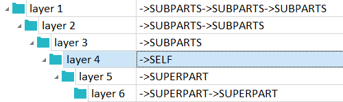Mit =>SUBPARTS:Module wird nach allen Modulen gesucht, die sich unterhalb des ausgewählten Elements befinden.