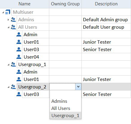 Wählen Sie im Reiter Usermanagement die Benutzergruppe aus, die Sie zur Eigentümergruppe einer anderen Benutzergruppe machen möchten.