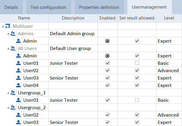Im Reiter Usermanagement wird eine Liste aller Benutzergruppen im Projekt angezeigt.