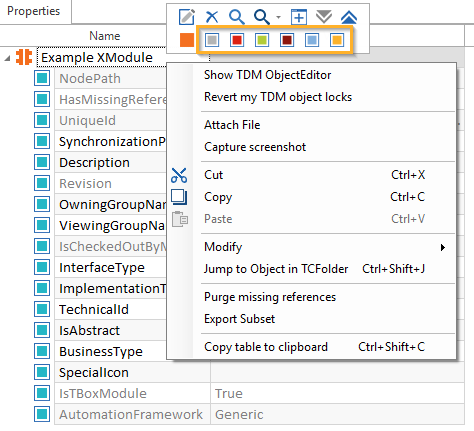 Um einen neuen Parameter zu erstellen, klicken Sie mit der rechten Maustaste auf ein XModul oder XModulattribut und wählen Sie die gewünschte Option aus der Minisymbolleiste.