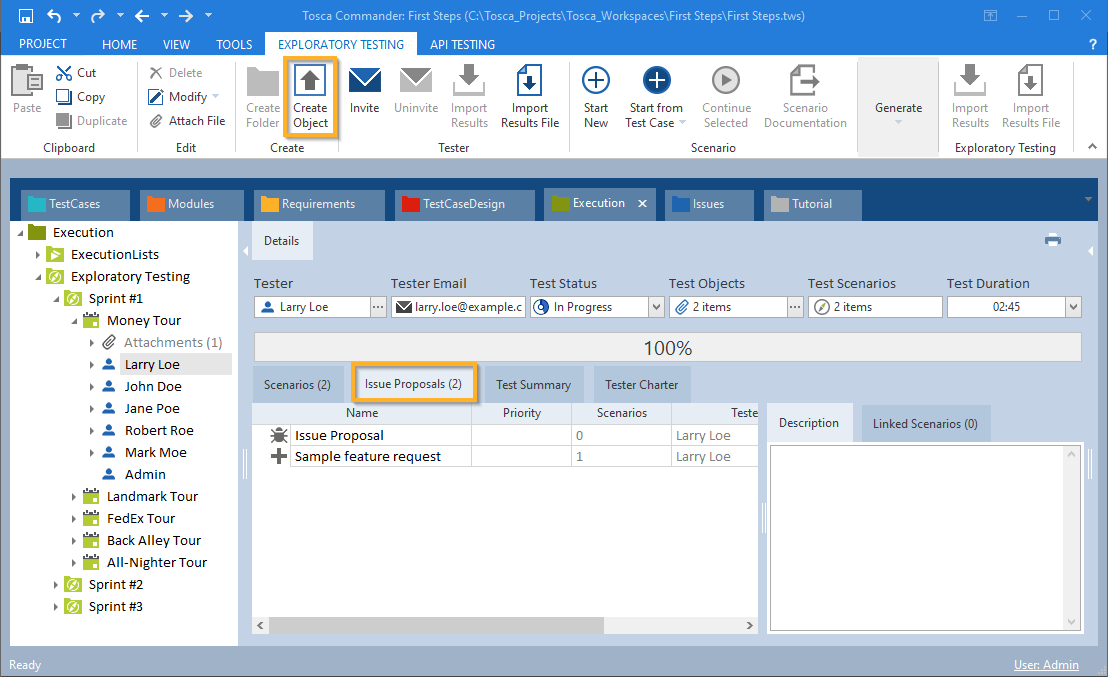 Alternativ können Sie einen Vorgangsvorschlag im Reiter Issue Proposals einer Session oder eines Testers im Tosca Commander bearbeiten.