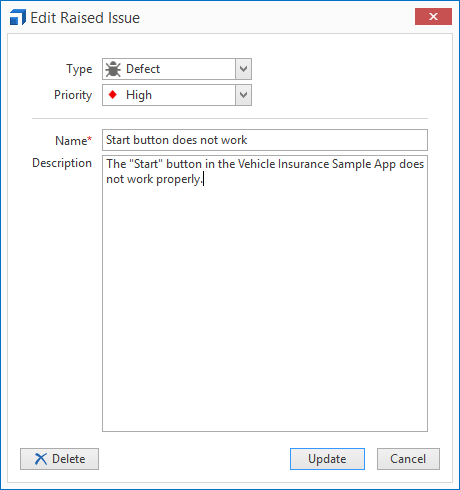 Bearbeiten Sie Type, Priority, Name und Description des Vorgangs.