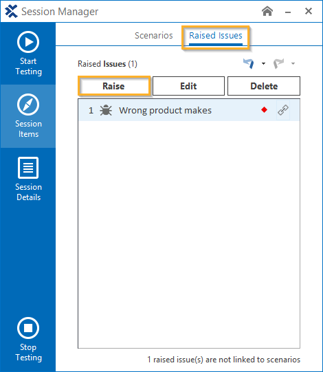 Wechseln Sie zum Reiter Raised Issues im Abschnitt Session Items des Session Managers, und klicken Sie auf die Schaltfläche Raise.