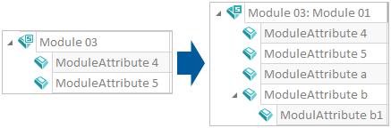 Bei einem Drag & Drop Vorgang eines XModuls auf einen Testfall werden ein XTestschritt und je nach Kardinalität XTestschrittwert Platzhalter oder ausgeprägte XTestschrittwerte zu den XAttributen erzeugt (siehe Kapitel " Standardeigenschaften von Modulen").
