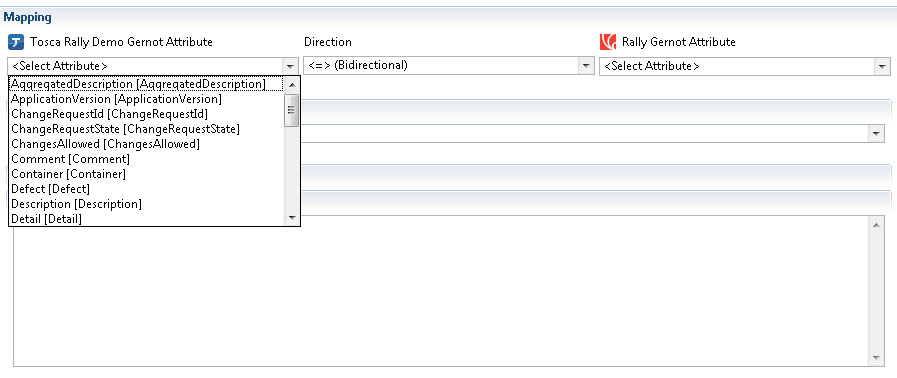 Weisen Sie jedem Tosca-Attribut ein Attribut des anderen Systems zu, mit dem es synchronisiert werden soll.