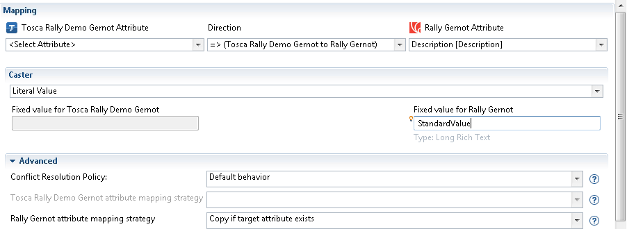 Wählen Sie dafür im Bereich Caster den Eintrag Literal Value aus dem Aufklappmenü und definieren Sie den Wert des Attributs manuell.