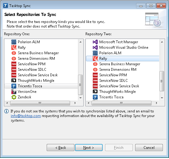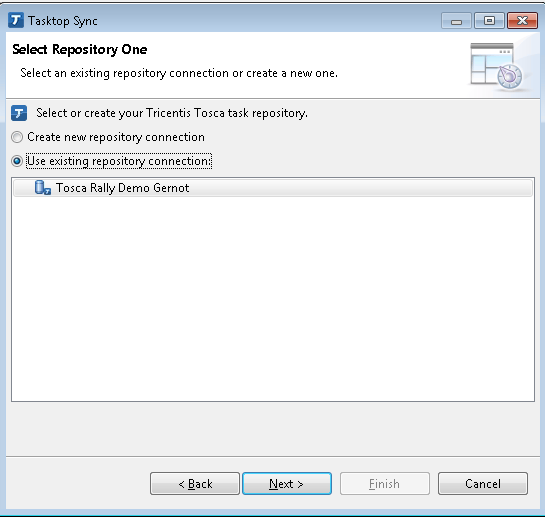 Selektieren Sie im Fenster Select Repositories To Sync Tosca aus und das System, das Sie mit Tosca synchronisieren möchten.